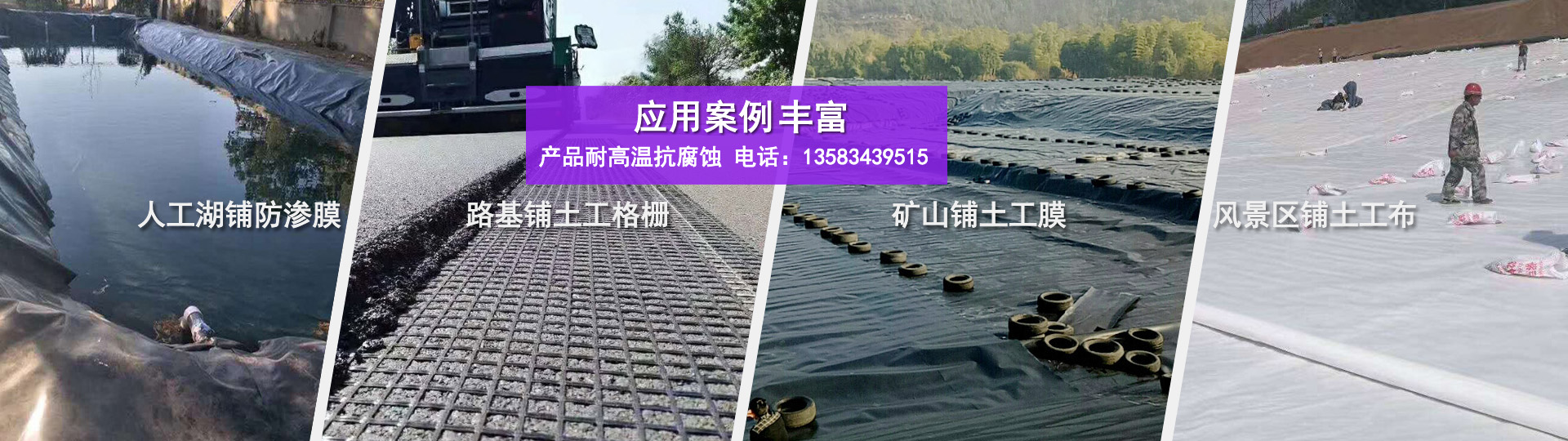 產(chǎn)品廣泛用于: 1.環(huán)保環(huán)衛(wèi)工程(如生活垃圾填埋場防滲、污水處理廠、有毒有害物質(zhì)填埋場、危險品倉庫、廠房等) 2.水利土木工程(河、湖、水庫、堤壩、堵漏、加固、水渠防滲、護坡等) 3.市政工程(地鐵、建筑物的地下工程和屋頂蓄水池、屋頂花園防滲、污水管道內(nèi)襯等) 4.園林綠化(人工湖、池塘、高爾夫球場的水塘底襯、護坡等) 5.石化(化工廠、煉油廠儲油池防滲防污、化學反應池、沉淀池的內(nèi)襯、二次襯層、藥廠基建防滲與隔離) 6.礦業(yè)(洗選池、堆浸池、堆灰場、尾礦壩防滲防污等) 7.交通設施工(公路的基礎加固、涵洞的防滲) 8.農(nóng)業(yè)(水庫、飲用水池、蓄水池防滲、灌溉系統(tǒng)的防滲) 9.水產(chǎn)養(yǎng)殖業(yè)(魚塘、蝦池的內(nèi)襯等)